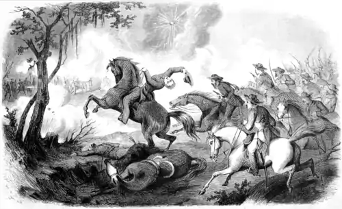 "He was waving his hat aloft, and cheering them on, when a fragment of shell struck him in the head, mortally wounding him."