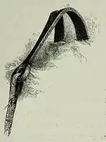 trouble a party of two or three men, and that the disadvantages of being alone are more felt while descending than during the ascent. In order to neutralise these inconveniences, I devised two little appliances, which were now brought into use for the first time. One was a claw—a kind of grapnel—about five inches long, made of shear steel, one-fifth of an inch thick. This was of use in difficult places where there was no hold within arm's length, but where there were cracks or ledges some distance higher. It could be stuck on the end of the alpenstock and dropped into such places, or, on extreme occasions, flung up until it attached itself to something. The edges that laid hold of the rocks were serrated, which tended to make them catch more readily: the other end had a ring to which a rope was fastened. It must not be understood that this was employed for hauling one's-self up for any great distance, but that it was used in ascending, at the most, for only a few yards at a time. In descending, however, it could be prudently used for a greater distance at a time, as the claws could be planted firmly; but it was necessary to keep the rope taut, and the pull constantly in the direction of the length of the implement, otherwise it had a tendency to slip away. The second device was merely a modification of a dodge practised by all climbers. It is frequently necessary for a single man (or for the last man of a party) during a descent, to make a loop in the end of his rope, which he passes over some rocks, and to come down holding the free end. The loop is then jerked off, and the process may be repeated. But as it sometimes happens that there are no rocks at hand which will allow a loose loop to be used, a slip-knot has to be resorted to, and the rope is drawn in tightly. Consequently it will occur that it is