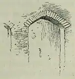 from Jean Antoine Carrel that there are other groups of arches, which are not seen from the path, all having the same appearance. It may be questioned whether those seen near the village of Antey are Roman. Some of them are semicircular, whilst others are distinctly pointed. Here is one of the latter, which might pass for fourteenth-century work, or later;—a two-centred arch, with mean voussoirs, and the masonry, in rough courses. These arches are well worth the attention of an archæologist, but some difficulty will be found in approaching them closely.[3]