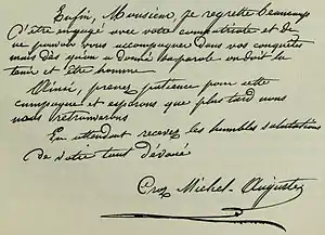 - ↑ I engaged Croz for 1865 before I parted from him in 1864; but upon writing to him in the month of April to fix the dates of his engagement, I found that he had supposed he was free (in consequence of not having heard from me earlier), and had engaged himself to a Mr. B——— from the 27th of June. I endeavoured to hold him to his promise, but he considered himself unable to withdraw from his later obligation. His letters were honourable to him. The following extract from the last one he wrote to me is given as an interesting souvenir of a brave and upright man:—