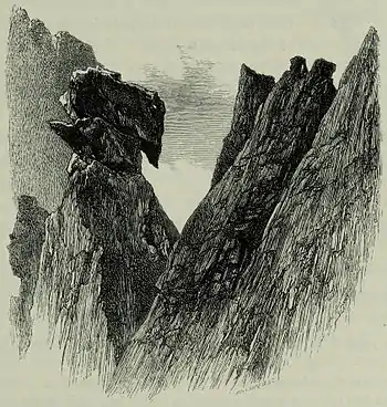 tottered and fell before our eyes, and, starting others in their downward course, grew into a perfect avalanche, which descended with a solemn roar on to the glaciers beneath.