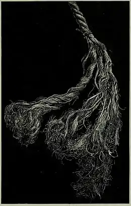 THE MANILLA ROPE.[1]equally strong rope, and, consequently, there had been only one link—that between old Peter and Lord F. Douglas—where the weaker rope had been used. This had a very ugly look for Taugwalder, for it was not possible to suppose that the others would have sanctioned the employment of a rope so greatly inferior in strength when there were more than 250 feet of the better qualities still remaining out of use.[2] For the sake of the old guide (who bore a good reputation), and upon all other accounts, it was desirable that this matter should be cleared up; and after my examination before the court of inquiry which was instituted by the Government was over, I handed in a number of questions which were framed so as to afford old Peter an opportunity of exculpating himself from the grave suspicions which at once fell upon him.