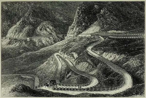 ![]() THE MONT CENIS ROAD AND THE FELL RAILWAY, NEAR THE SUMMIT OF THE PASS, ON THE ITALIAN SIDE. |