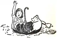 said, woke the Piglet up and just gave him time to jerk himself back into safety and say, "How interesting, and did she?" when—well, you can imagine his joy when at last he saw the good ship, The Brain of Pooh (Captain, C. Robin; 1st Mate, P. Bear) coming over the sea to rescue him. Christopher Robin and Pooh again. . . .