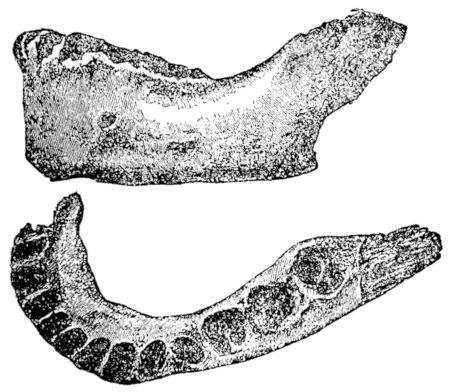 No fossil remains of man have hitherto been found in caves frequented by Palæolithic races in South Britain, with the exception of a female skeleton in the Paviland cave, described by Dr. Buckland, a molar tooth in the cave of Pont Newydd in Wales, and the hitherto overlooked jaw from Kent's Cavern. In France and other parts of the Continent the remains of fossil cave-men have been frequently met with.