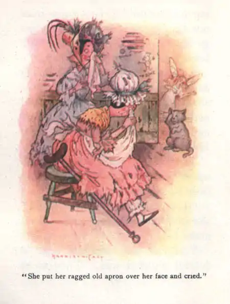 They were afraid to kiss her at first, even though she was engaged to Peter Piper. She was so pretty and her frock had so much lace on it that they were afraid their old rags might spoil her. But she did not care about her lace and flew at them and kissed and hugged them every one.