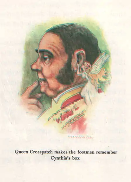 And I—Queen Crosspatch—myself—flew downstairs and made the footman remember that minute that a box had come for Cynthia and that he must take it upstairs to her nursery. If I had not been on the spot he would have forgotten it until it was too late. But just in the very nick of time up he came, and Cynthia sprang up as soon as she saw him.