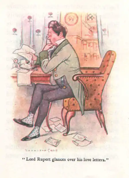 The Castle dolls were grand beyond words, and they were all lords and ladies. These were their names. There was Lady Gwendolen Vere de Vere. She was haughty and had dark eyes and hair and carried her head thrown back and her nose in the air. There was Lady Muriel Vere de Vere, and she was cold and lovely and indifferent and looked down the bridge of her delicate nose. And there was Lady Doris, who had fluffy golden hair and laughed mockingly at everybody. And there was Lord Hubert and Lord Rupert and Lord Francis, who were all handsome enough to make you feel as if you could faint. And there was their mother, the Duchess of Tidyshire; and of course there were all sorts of maids and footmen and cooks and scullery maids and even gardeners.