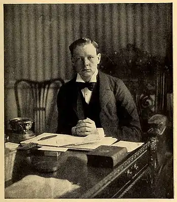 When he came to this country half of the people here were in sympathy with the Boers, and did not care to listen to what they supposed would be a strictly British version of the war. His manager, without asking permission of those whose names he advertised, organized for Churchill's first appearance in various cities, different reception committees.