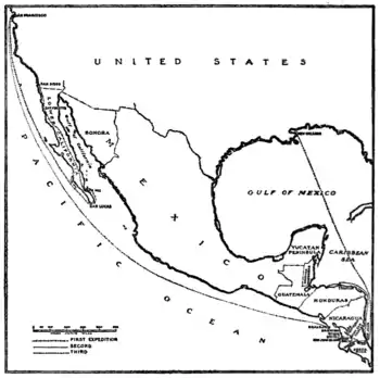 ROUTES OF WALKER'S THREE FILIBUSTERING EXPEDITIONS