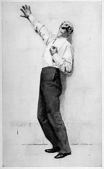 "It all goes to show how we are surrounded and hampered by the traditions of the stage. The gallery wants to see a man die all over the place, and so the victim has to scatter the furniture about and make a fool of himself generally, when he should quietly succumb to a well-deserved blow. You ask any physician and he will tell you that a man stabbed or shot through the heart collapses at once. There is no jumping-jack business in such a case. He doesn't play at leapfrog with the chairs and sofas, but sinks instantly to the floor and is done for."