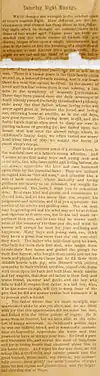 What changes are wrought in the briefest span of time's ceaseless flight. How different are the environments that chance has flung about us this Saturday night when in thought we contrast them with those of two weeks ago? Again have we been reminded that the whole course of human life and destiny hinges often upon a single circumstance, and that in the loom of fate the breaking of a single strand is adequate to mar forever life's golden cloth. Tonight we are sad and the hand of (illegible text) has fallen (illegible text) upon our heart. We are (illegible text) in the accustomed place, but all is not as it was. There is a vacant place in the little family circle around us, a beloved form is missing, and in our heart there is a void that cannot be filled. In the chorus of loved and familiar voices there is one missing, a lost note in the symphony of domestic conversation. Three days have passed since the dark messenger of death silently passed the family threshold and pitilessly stole away the dear father whose loving voice will never again greet in welcome the loved and loving son, returning home at evetide, as in the old days, now gone forever. The loving heart is still, and the feeble hands that so often used to clasp our own in parting sadness or greeting joy, are folded upon the breast that was once the altered refuge where, in childhood's happy days, we often rested our weary head when tired of play, we sought the haven of sweet sleep's repose.