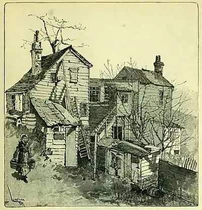 All over the rough land, dropping riverward to the west, we see, side by side with desolate old mansions, that were fashionable water-side villas in 1800, the outlying shanties, rebels in their way against the urban constraint of the town proper. They have broad fields to themselves, and are happy in a plenitude of wind and sun. Yet they are just as fond of creeping into out-of-the-way corners, and up inaccessible heights, as those in the crowded settlement.