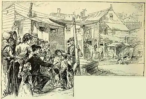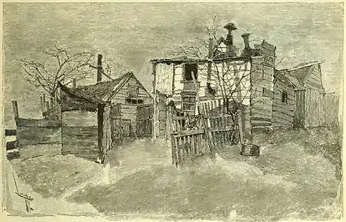 - ↑ Since this article was written, Shantytown has lost several blocks at each end—absolutely lost them, for they have been filled in or cut down to the plane of the graded streets.
