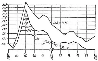Fig. 6. Price Movements in the United States under the "Greenback" Standard and in the United Kingdom under the Gold Standard