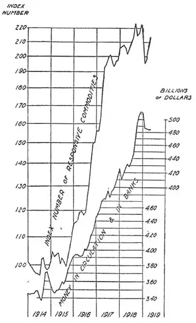 - ↑ Irving Fisher, "Equation of Exchange for 1914, and the War," American Economic Review, June, 1915; see also same journal, author, and subject, June, 1919.