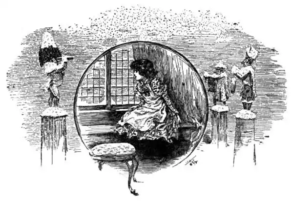 Dorothy stared about for a moment, and then, suddenly remembering the Caravan, she jumped up and ran to the window. It was snowing hard, and she saw through the driving snowflakes that the Highlander and Sir Walter Rosettes were standing on their pedestals, complacently watching the people hurrying by with their Christmas parcels; and as for the Admiral, he was standing on his pedestal, with a little pile of snow like a sugar-loaf on top of his hat, and intently gazing across the street through his spy-glass.