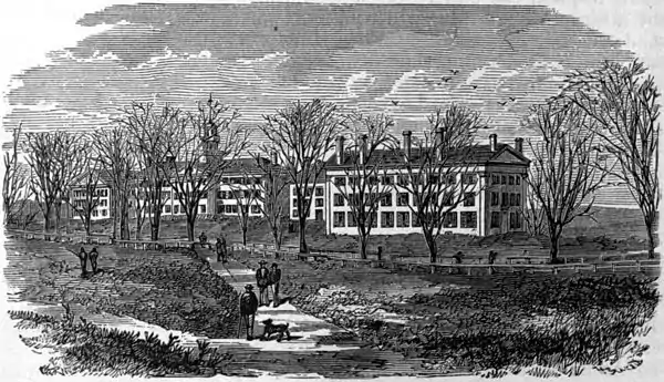 DARTMOUTH COLLEGE, an institution of learning in Hanover, N. H. The college buildings front on a fine campus on an upland plain near the Connecticut river. Dartmouth hall is a long central building, containing the chapel, while in line with it are Wentworth and Thornton halls. In front of this line is Reed hall, containing the college library. These buildings are old and plain. East of the line is Culver hall, a handsome new structure, 100 by 60 ft. and four stories high, containing laboratories, recitation and lecture rooms, and rooms for the various cabinets and museums. North of the college is the Chandler scientific school, while the medical college and the observatory are in the vicinity. The government of the college is vested in a corporation of 12 members, of whom the governor of New Hampshire for the time being is one. Eight of the members must be residents of the state, and seven must be laymen. The college comprises an academic, a scientific, and an agricultural department, in each of which a partial course may be taken, embracing two at least of the prescribed studies. The academic year, beginning about the first of September and ending with commencement on the last Thursday in June, is divided into two terms of 20 weeks each. A public examination is held at the end of each term. Instruction is administered by recitations and lectures, chiefly the former. The regular course in the academic department extends through four years, upon the completion of which the degree of bachelor of arts is conferred. All the studies are required, except that in the first term of the sophomore year French may be taken instead of mathematics, and in the second term of the junior year Greek and Latin are optional with mathematics. The tuition fee for each student is $70 per annum, while the expenses for room rent, board, fuel, and lights average from $120 to $200 a year. Aid is given to indigent students, mainly in the form of scholarships, usually of $70 per annum, but in some cases $100. In 1874 upward of 100 scholarships were available. Prizes amounting to about $500 are annually awarded. The Chandler scientific department was founded in 1852, pursuant to a bequest of $50,000 made by Abiel Chandler, late of Walpole, N. H., and formerly of Boston, Mass. The regular course comprises four years, at the end of which the degree of bachelor of science is conferred. The degree of master of science is conferred in course upon a bachelor of science of three years' standing or more, on payment of $5. French and German are included among the studies, while Latin and Greek are omitted. The cost of tuition in this department is $60 a year. The agricultural department was established in 1866 by the legislature, under the title of the “New Hampshire College of Agriculture and the Mechanic Arts,” in fulfilment of the act of congress for this purpose. It was organized under a board of nine trustees, appointed partly by the governor and council and partly by the corporation of the college. There are two terms in each year, extending from about the first of September to the last of April, with a winter vacation of four weeks. The course of instruction extends through three years, and embraces mathematics, physics, drawing, bookkeeping, botany, chemistry, physiology, zoölogy, mechanics, political economy, and geology. Applicants for admission must be at least 16 years of age, and pass a satisfactory examination in arithmetic, English grammar, geography, and history. During the first year all students pursue the same studies; at the beginning of the second year they are required to select either the special course of agriculture, or the course of mechanic arts. In the immediate vicinity of the college is an experimental farm of 165 acres, which also furnishes to students opportunities for remunerative labor. A new building is soon to be erected, containing rooms for the farm superintendent and for students. It will embrace a boarding establishment, which will be supplied with the products of the farm, and where board will be furnished to students at cost. The degree of bachelor of science will be conferred upon those who have completed the entire course of agriculture or mechanic arts and have passed the final examination. The cost of tuition is $15 per term. A special course of instruction in civil engineering for advanced students has been established by means of $70,000 given for that purpose by the late Gen. Sylvanus Thayer of Braintree, Mass. It is designed to extend through at least two years, a portion of each being given to outdoor practice. The medical department was founded in 1797, and was formerly known as the New Hampshire medical college. There is an annual course of lectures, beginning early in August and continuing 14 weeks. Medical instruction is also given by means of recitations, for which purpose there are two terms of 14 weeks each, beginning in December and in March. Students 21 years old and upward, who have devoted three years to the study of medicine, and during that time have attended two courses of medical lectures, including one at Dartmouth, may upon examination receive the degree of doctor of medicine. By a recent gift of $10,000 from E. W. Stoughton of New York, a museum of pathological anatomy has been formed.—The faculty of the college comprises, besides the president and librarian, 26 professors, 2 lecturers, and 7 instructors. In 1873-'4 the total number of students was 420, including 262 in the academical, 79 in the scientific, 52 in the medical, 22 in the agricultural, and 5 in the civil engineering department. These students represented 23 different states and territories, Nova Scotia, Canada, Liberia, and Japan. According to the triennial catalogue of 1873, the whole number of alumni was 3,907, of whom 2,077 were living. The several libraries connected with the college contain 47,200 volumes. The astronomical and meteorological observatory contains, besides other valu