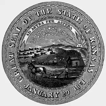 KANSAS, a western state of the American Union, the 21st admitted, lying between lat. 37° and 40° N., and lon. 94° 40′ and 102° W., bounded N. by Nebraska, E. by Missouri, S. by Indian territory, and W. by Colorado. A portion of the boundary on the northeast, adjoining Missouri, is formed by the Missouri river. The state has the general form of a rectangle, extending 410 m. E. and W. and about 210 m. N. and S., and containing 81,318 sq. m. It is divided into 104 counties, of which 31 in 1874 were unorganized, as follows: Allen, Anderson, Arapahoe, Atchison, Barbour, Barton, Bourbon, Brown, Buffalo, Butler, Chase, Cherokee, Cheyenne, Clark, Clay, Cloud, Coffey, Comanche, Cowley, Crawford, Davis, Decatur, Dickinson, Doniphan, Douglas, Edwards, Ellis, Ellsworth, Foote, Ford, Franklin, Gore, Graham, Grant, Greeley, Greenwood, Hamilton, Harper, Harvey, Hodgeman, Howard, Jackson, Jefferson, Jewell, Johnson, Kansas, Kearney, Kingman, Kiowa, Labette, Lane, Leavenworth, Lincoln, Linn, Lyon, Marion, Marshall, McPherson, Meade, Miami, Mitchell, Montgomery, Morris, Nemaha, Neosho, Ness, Norton, Osage, Osborne, Ottawa, Pawnee, Phillips, Pottawattamie, Pratt, Rawlins, Reno, Republic, Rice, Riley, Rooks, Rush, Russell, Saline, Scott, Sedgwick, Sequoyah, Seward, Shawnee, Sheridan, Sherman, Smith, Stafford, Stanton, Stevens, Sumner, Thomas, Trego, Wabaunsee, Wallace, Washington, Wichita, Wilson, Woodson, Wyandotte. The cities of Kansas, as reported by the federal census of 1870, were: Atchison, which had 7,054 inhabitants; Baxter Springs, 1,284; Emporia, 2,168; Fort Scott, 4,174; Lawrence, 8,320; Leavenworth, 17,873; Ottawa, 2,941; Paola, 1,811; Topeka, the capital, 5,790; and Wyandotte, 2,940. Kansas had 8,501 inhabitants in 1855, 107,206 in 1860, and 364,399 in 1870. Township and city assessors are required to make every year an enumeration of inhabitants. According to the state census of 1873, the number of inhabitants in the organized counties was 605,063; the population in the unorganized counties was estimated at 5,800, making the total population of the state 610,863, a gain of 246,464, or 67.63 per cent, in three years. Of the total population in 1870, 202,224 were males and 162,175 females; 316,007 were native and 48,392 foreign born; 346,377 were white, 17,108 colored, and 914 Indians. Of those of native birth, 63,321 were born in the state, 35,558 in Illinois, 13,073 in Iowa, 16,918 in Kentucky, 29,775 in Missouri, 18,557 in New York, 38,205 in Ohio, and 19,287 in Pennsylvania. Of the foreigners, 5,324 were natives of British America, 6,161 of England, 10,940 of Ireland, 1,274 of France, 12,774 of Germany, 4,954 of Sweden, and 1,328 of Switzerland. The density of population was 4.48 persons to a square mile. There were 72,493 families, with an average of 5.03 persons to each, and 71,071 dwellings, with an average of 5.13 persons to each. In the S. W. part of the state is a settlement of Mennonites. The increase of population from 1860 to 1870 was 239.9 per cent., a much larger gain during that period than is shown in any other state; the relative rank rose from 33 to 29. The number of male citizens 21 years old and upward was 99,069. There were in the state 108,710 persons from 5 to 18 years of age, and 95,002 males from 18 to 45. The total number attending school was 63,183; 16,369 persons 10 years of age and over were unable to read, and 24,550 could not write. Of the 105,680 male adults in the state, 8,894, or 8.42 per cent., were illiterate; and of the 69,645 female adults, 9,195, or 13.2 per cent., were illiterate. The number of paupers supported during the year ending June 1, 1870, was 361, at a cost of $46,475. Of the total number (336) receiving support June 1, 1870, 190 were natives and 146 foreigners. The number of persons convicted of crime during the year was 151. Of the total number (329) in prison June 1, 1870, 262 were of native and 67 of foreign birth. The state contained 128 blind, 121 deaf and dumb, 131 insane, and 109 idiotic. Of the total population 10 years of age and over (258,051), there were engaged in all occupations 123,852 persons; in agriculture, 73,228, including 21,714 agricultural laborers and 50,820 farmers and planters; in professional and personal services, 20,736, of whom 538 were clergymen, 4,481 domestic servants, 72 journalists, 7,871 laborers not specified, 682 lawyers, 906 physicians and surgeons, and 6,012 teachers not specified; in trade and transportation, 11,762; in manufactures and mechanical and mining industries, 18,126, including 4,138 blacksmiths, 625 boot and shoe makers, 5,064 carpenters, and 1,466 brick and stone masons. The total number of deaths returned by the census of 1870 was 4,596; there were 413 deaths from consumption, or one death from that disease to 11 from all causes; 599 from pneumonia, 354 from scarlet fever, 240 from intermittent and remittent fevers, and 204 from enteric fever. The Indians remaining in Kansas, not enumerated in the census of 1870, are the Kickapoos, 290 in number, on a reservation of 19,200 acres in the N. E. part of the state; the prairie band of the Pottawattamies, about 400, on a reservation of 77,357 acres 14 m. N. of Topeka; and about 56 Chippewas and Munsees, who own 5,760 acres of land about 35 m. S. of Lawrence.