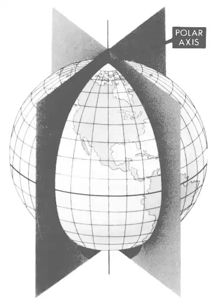 The Earth is an irregular oblate spheroid (a sphere flattened at the poles). Measurements of its dimensions and the amount of its flattening are subjects of geodesy. However, for most navigational purposes, assuming a spherical Earth introduces insignificant error. The Earth’s axis of rotation is the line connecting the north and south geographic poles.