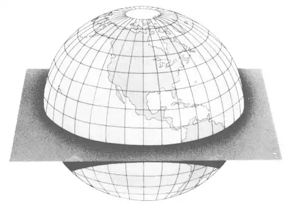 A small circle is the line of intersection of a sphere and a plane which does not pass through the center. See Figure 104a. The term meridian is usually applied to the upper branch of the half-circle from pole to pole which passes through a given point. The opposite half is called the lower branch.