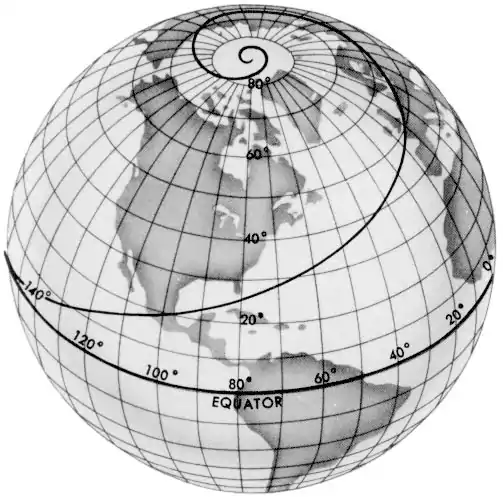 Distance, as used by the navigator, is the length of the rhumb line connecting two places. This is a line making the same angle with all meridians. Meridians and parallels which also maintain constant true directions may be considered special cases of the rhumb line. Any other rhumb line spirals toward the pole, forming a loxodromic curve or loxodrome.
