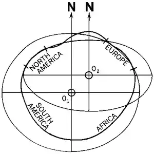 Figure 203. An ellipsoid which fits well in North America may not fit well in Europe, whose ellipsoid must have a different size, shape, and origin. Other ellipsoids are necessary for other areas