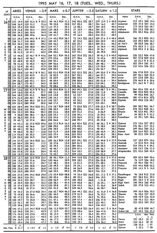 | Tabulated GHA ♈ (2300 hrs.) | 194° 32.7' |