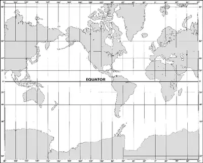 A cylindrical projection similar to the Mercator, but with uniform spacing of the parallels, is called a rectangular projection. It is convenient for graphically depicting information where distortion is not important. The principal navigational use of this projection is for the star chart of the Air Almanac, where positions of stars are plotted by rectangular coordinates representing declination (ordinate) and sidereal hour angle (abscissa). Since the meridians are parallel, the parallels of latitude (including the equator and the poles) are all represented by lines of equal length.