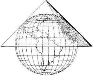If points on the earth are projected directly to a plane surface, a map is formed at once, without cutting and flattening, or “developing.” This can be considered a special case of a conic projection in which the cone has zero height.