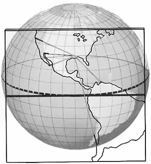 If the cylinder is tangent along some great circle other than the equator, the projected pattern of latitude and longitude lines appears quite different from that described above, since the line of tangency and the equator no longer coincide. These projections are classified as oblique or transverse projections.