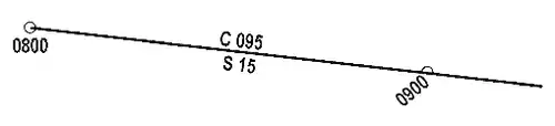 Draw a new course line whenever restarting the DR. Extend the course line from a fix in the direction of the ordered course. Above the course line place a capital C followed by the ordered course in degrees true. Below the course line, place a capital S followed by the speed in knots. Label all course lines and fixes immediately after plotting them because a conning officer or navigator can easily misinterpret an unlabeled line or position.