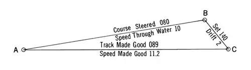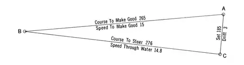 The direction and length of AC are the estimated track and speed made good.
