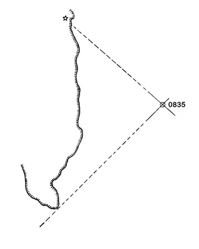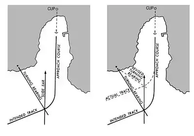 - From D measure the advance, 920 yards, back along the original course line. This locates E, the point at which the turn should be started.