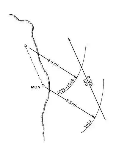 - The distance run between bearings is 2.5 miles (10 minutes at 15 knots).