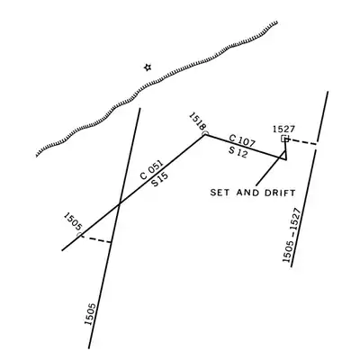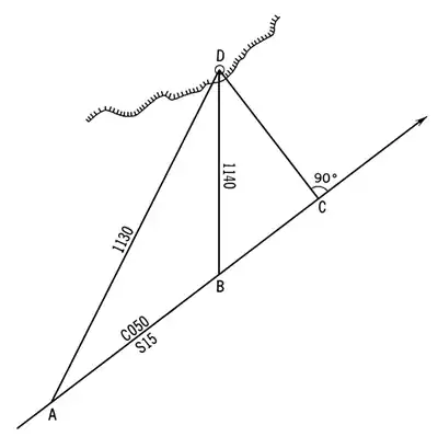 - From C draw a perpendicular, CD, to the original course line, intersecting at D.