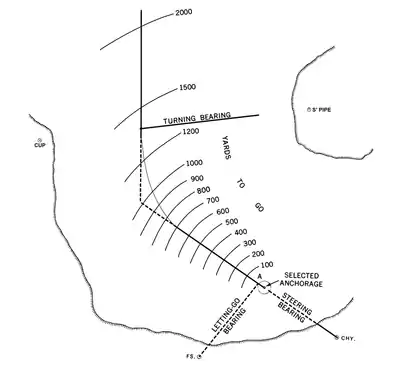 It is usually best to follow an established procedure to ensure an accurate positioning of the anchor, even when anchoring in an open roadstead. The following procedure is representative. See Figure 817.