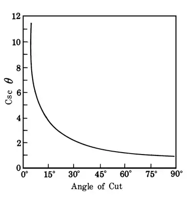 Since the fix error is a function of the cosecant of the angle of intersection, it is least when the angle of intersection is 90°. As illustrated in Figure 823c, the error increases in accordance with the cosecant function as the angle of intersection decreases. The increase in the error becomes quite rapid after the angle of intersection has decreased to below about 30°. With an angle of intersection of 30°, the fix error is about twice that at 90°.