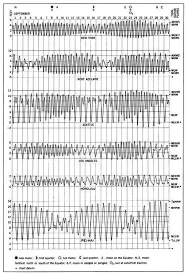 Figure 904. The rise and fall of the tide at New York, shown graphically.