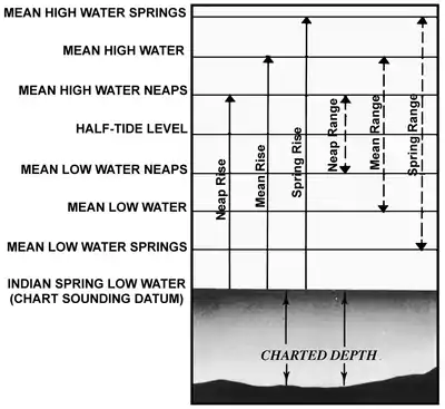 - Mean tide level. This is the average between mean low and mean high water, measured from chart datum.