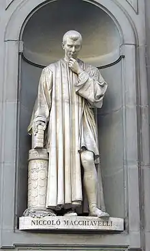 For his contribution to political philosophy, Machiavelli is commemorated by this statue at the Uffizi Gallery in Florence.