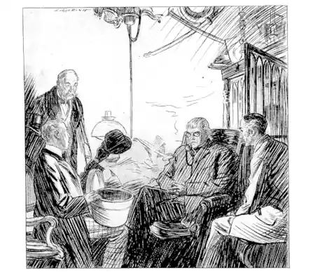 Our visitors arrived punctually, the third gentleman being, as we had supposed, Mr. Solomon Lowe. I had not seen Inspector Badger before, and he now impressed me as showing a tendency to invert the significance of his own name by endeavoring to "draw" Thorndyke—in which, however, he was not very successful.