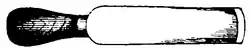 Method of Holding French Knife. be "pared," or shaved round the edges, using the pencil marks as a guide. This paring process is not so difficult, especially if a French knife is used, such as may now be purchased at most material dealers. The chief point being that a very sharp edge is to be kept on the knife, and that the burr is on the cutting edge. The knife is to be held in the right hand, placing two fingers on the top with the thumb underneath. The leather must be placed on a piece of marble, lithographic stone, or thick glass, and held tightly strained between finger and thumb of the left hand. Then by a series of pushes from the right hand, the knife takes off more or less according to the angle given. The burr causes the knife to enter ![]()