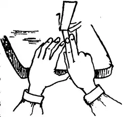 Method of Holding Ordinary Knife. a peculiar grain, and was dyed with very bright colours. It is now largely manufactured in London and Paris; the French manufacture is the finest. Russia and calf require no setting up of the grain, but russia should be well rolled out with the rolling pin.