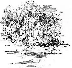 49. Bacon's war against Governor Berkeley10; Jamestown burned.—Long after Captain Smith was in his grave, Sir William Berkeley was made governor of Virginia by the king of England. He treated the people very badly. At last a young planter named Bacon raised a small army and marched against the governor, who was in Jamestown. The governor, finding that he had few friends to fight for him, made haste to get out of the place. Bacon then entered it with his men; but as he knew that, if necessary, the king would send soldiers from England to aid the governor in getting it back, he set fire to the place and burned it. It was never built up again, and so only a crumbling church-tower and a few gravestones can now be seen where Jamestown once stood. Those ruins mark the first English town settled in America.