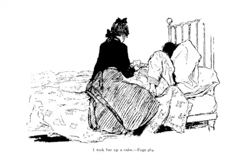 I took her up a cake after the reading that evening, and she had Edward's picture stuck on the foot-board, and I think she had been crying. I told her if it was the jelly she minded not to care, for the cream was a little sour, anyway, but she only scowled at me and pushed the cake away, which broke the frosting. It fell on the floor and she pretended not to notice it, but I heard the bed creak when I went out, and I am quite sure she got it.