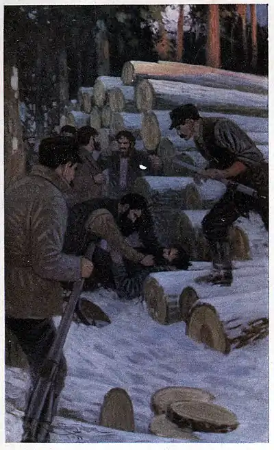 Arrived at the scene of operations, the lethargy vanished. Men sighed as they lifted axes for the first blow—such a sigh as one gives when stooping to resume a burden. With the fall of the blow, and the shock of it running up the helve through arms and shoulders, they were completely awake. What remained of the dull, aimless resentment was directed at the timber that ringed them around—the timber that represented at once a livelihood and an unending toil.