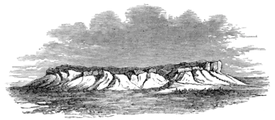 platform, each stage being of a different colour. The temple was devoted to the seven planets; the height of the earthen platform was not ascertained, the first stage, which was an exact square, was 272 feet each way, and 26 feet high, the bricks blackened with bitumen; this stage is supposed to have been devoted to the planet Saturn. The second stage was a square of 230 feet, 26 feet high, faced with orange-coloured bricks; supposed to be devoted to Jupiter. The third stage, 188 feet square, and 26 feet high, faced with red bricks, was probably dedicated to Mars. The fourth stage, 146 feet square, and 15 feet high, was probably devoted to the Sun, and is supposed by Sir H. Rawlinson to have been originally plated with gold. The fifth stage is supposed to have been 104, the sixth 62, and the seventh 20 feet square, but the top was too ruinous to decide these measurements. These stages were probably devoted to Venus, Mercury, and the Moon. Each stage of the building was not set in the centre of the stage on which it rested, but was placed 30 feet from the front, and 12 feet from the back. The ruin at present rises 154 feet above the level of the plain, and is the most imposing pile in the whole country. The only other ruin which has any claim to represent the tower is the Babil mound within the enclosure of Babylon, which is the site of the Temple of Bel. I have given views of both ruins as the possible alternative sites.