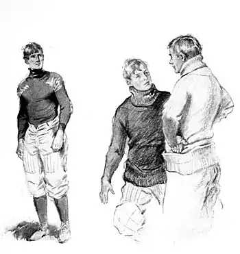 Strange to tell there were no more fumbles as long as Mr. Cobb was by, but almost as soon as his back was turned the trouble began again. Fumbles, perhaps, were not so frequent, but almost always there was delay in getting the ball from center to back. Finally Horace Burlen stood up and faced Roy disgustedly.