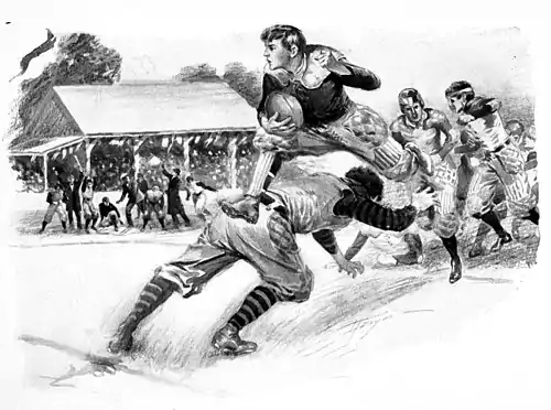 It was maddening. Only thirty yards to go, only six trampled white lines to cross, and not time enough to do it, unless—Roy called for time to tie a lace and while he bent over his shoe he thought hard. Ever since he had taken charge of the team he had been studying the disposition of the enemy's force. He had one more trump to play, a quarter-back run. He had kept it for the last because he did not want to appear to be seeking personal glory. For that reason he had given every one of the backs, as well as the two tackles, a chance. But while they had made good gains they had failed to get clear for a run. And now he was surely entitled to a try himself. Not that he was very hopeful of succeeding where the others had failed, for Pool, the rival quarter, was a veritable wonder and time and again had called the play in time to allow the back-field to spoil the run. But time was almost up—there could scarcely be more than a minute and a half remaining—and it was now or never.
